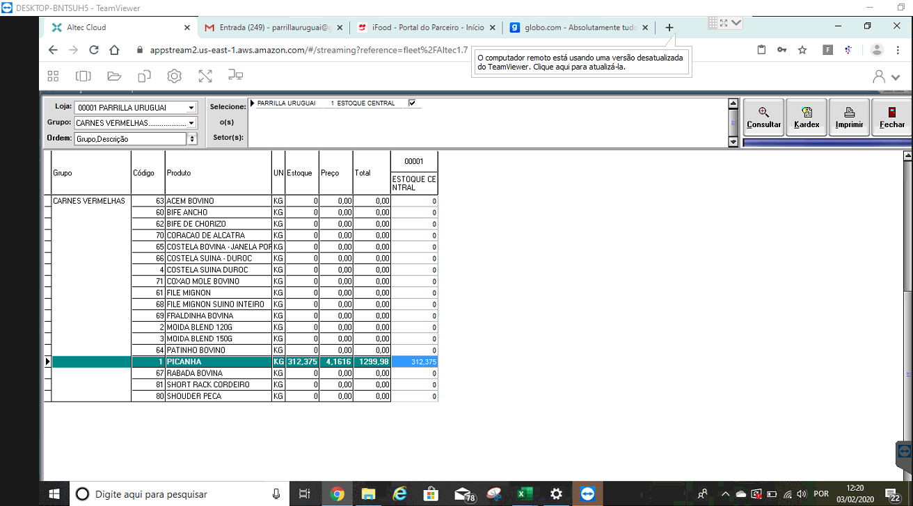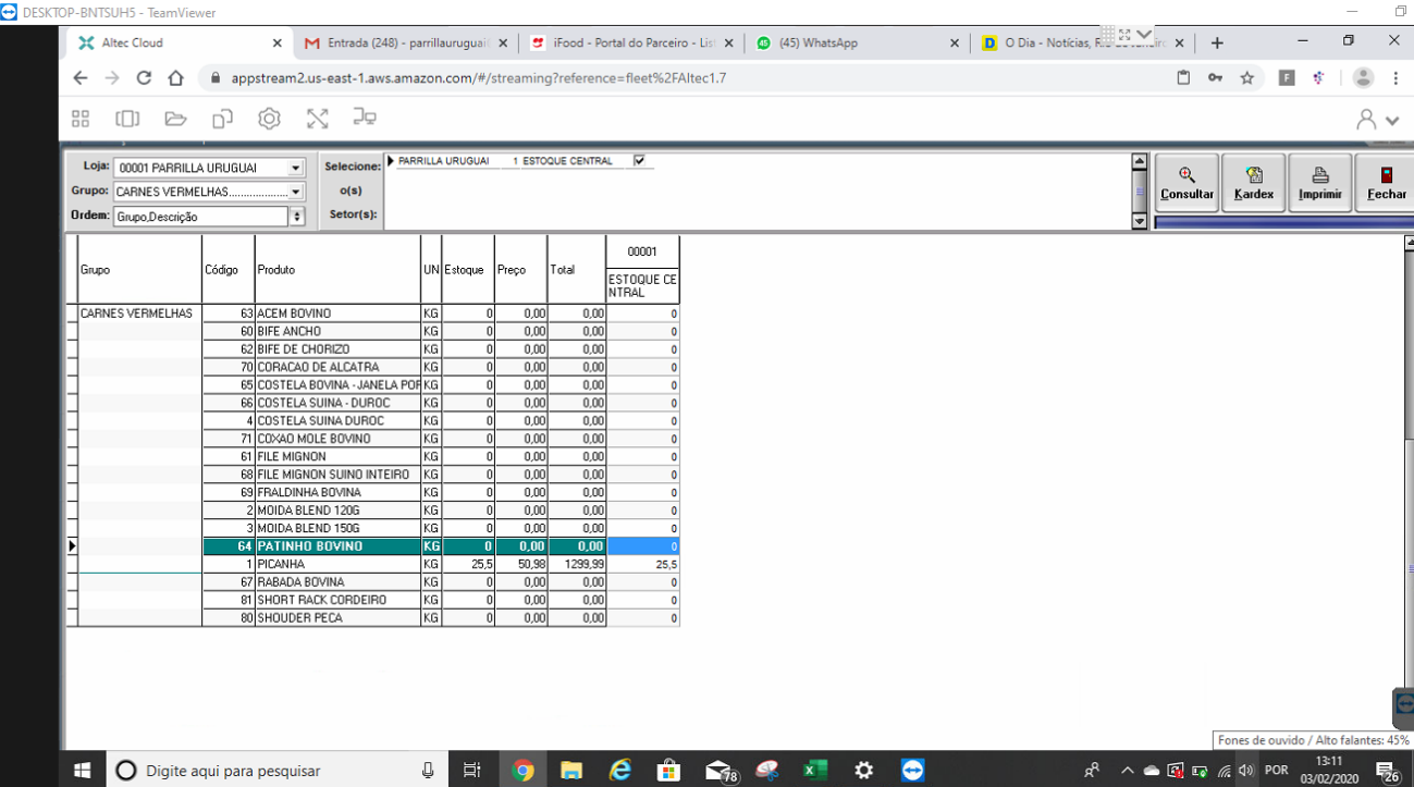 Após o procedimento foi feito o acesso novamente ao inventario, através do menu
