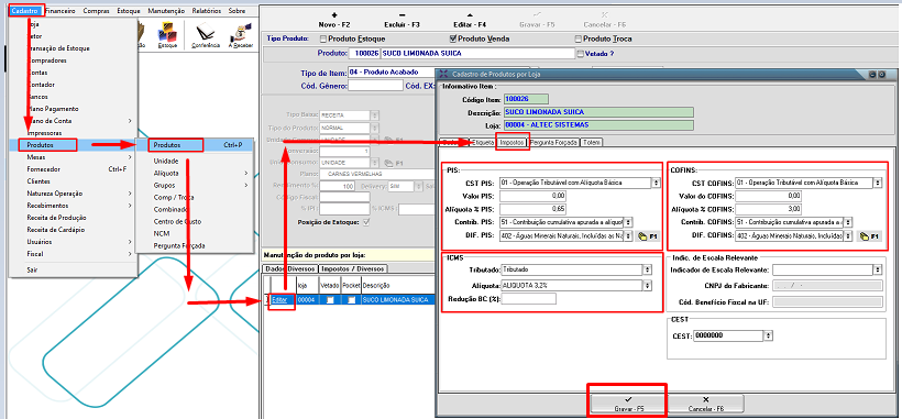 Cadastro>Produtos> Produtos> Duplo clique no produto> Editar(lado Esquerdo inferior>Aba Impostos> Fazer as validações/alterações dos impostos, se necessário> Gravar.